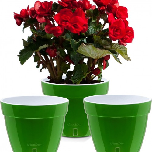 Santino AST 7.1 Inch Self Watering Planter Green-Gold/White Set of 3 for Indoor Plants