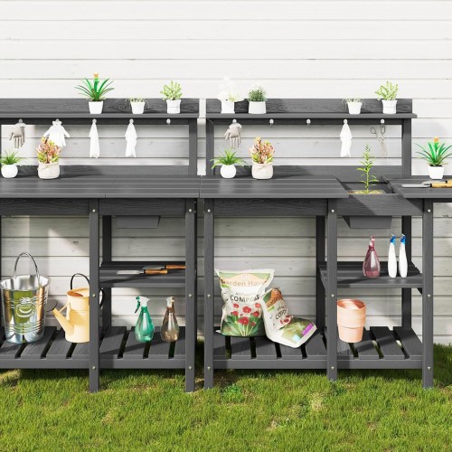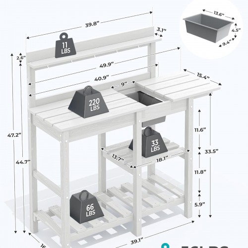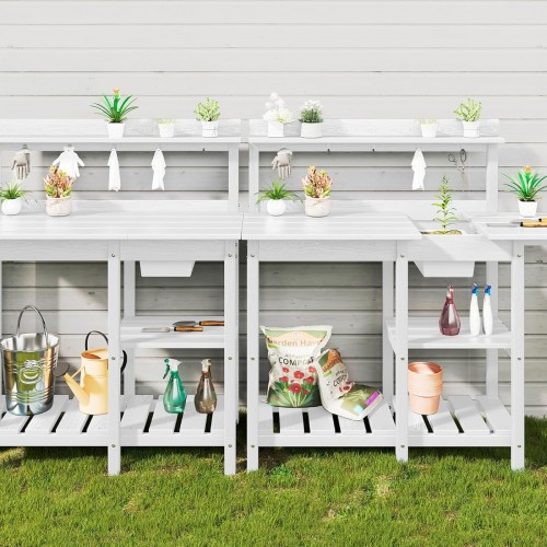 SERWALL Potting Table Set of 2 for Outside All Weather Use- White