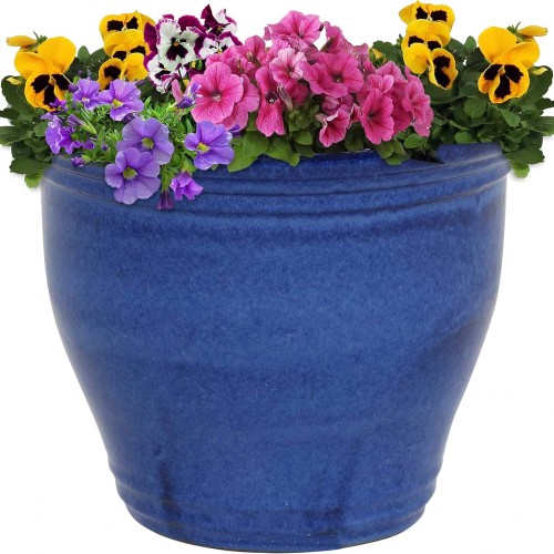 Sunnydaze Purlieu 12-Inch Outdoor/Indoor Ceramic Planters – Set of 2 -Tempest