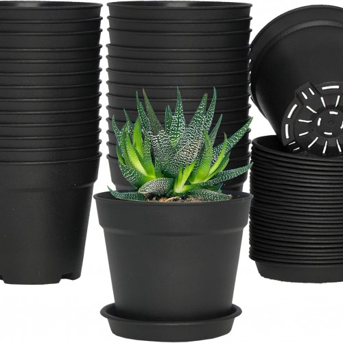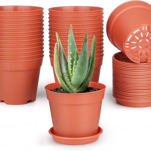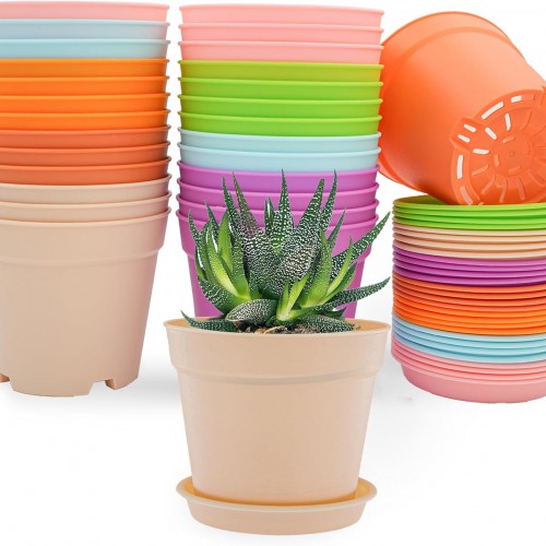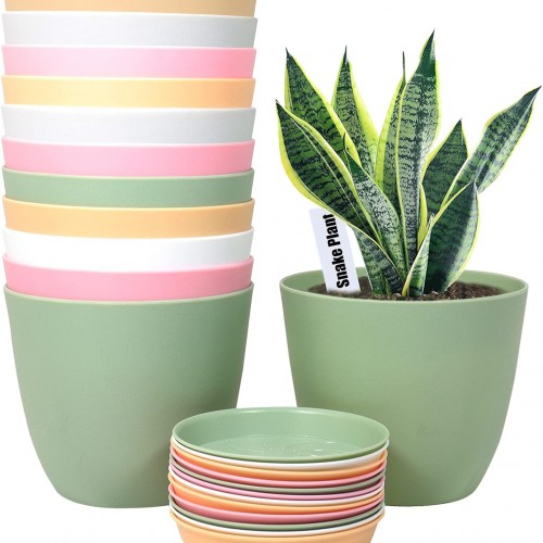 6inch 12Pack Plant Pots, Plastic Planter for Indoor Outdoor Flowers Plants, Green