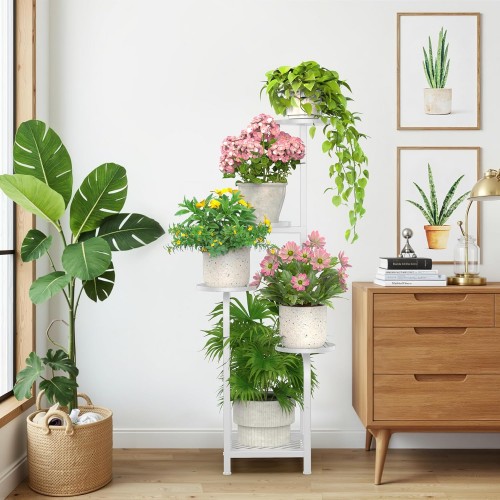 TOSKING 5 Tier Tall Plant Stand Indoor Outdoor, Heavy Duty Corner Shelf for Plants & Decor, Space Saving 3.9FT Metal Flower Pot Stand for Balcony, Garden, Living Room, Patio (White, 47in)