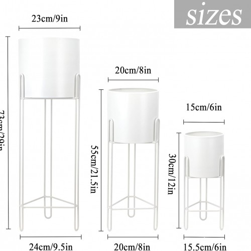 TRIROCKS Set of 3 Planters with Stand Indoor Otdoor Tall Planters for Indoor Plants 29 &22 &12″ Morden Planters Flower Pots for Living Room Corner Kitchen Office Garden Balcony Patio Decor(White)