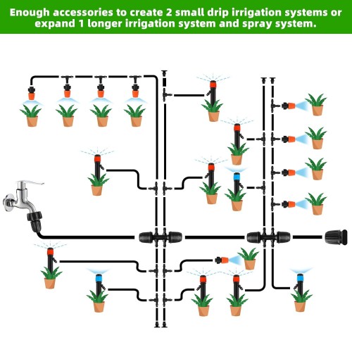 240FT DIY Automatic Drip Irrigation System Kits for Garden Plant Watering Misting System for Greenhouse Patio Lawn with Adjustable Drip Emitters 5/16″ and 1/4″ Irrigation Tubing Connectors Fittings