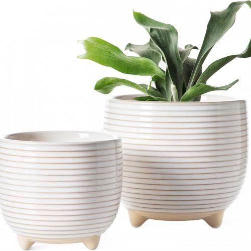 10/9/8 inch Medium Flower Pots, 3 Pack Modern Decorative Plastic Planters with Drainage Holes and Tray, Plant Pots for Indoor Outdoor Plants, White