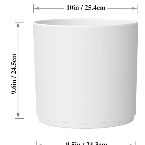10 Inch Large Plant Pots for Indoor Outdoor Plants, Cylinder Deep Flower Pots with Drainage Holes and Saucer, Big Decorative Plastic Planter Pots for Garden House Plants, White