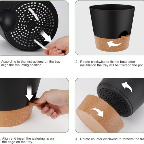 10-Inch Plant Pots, Self-Watering Planters with Drainage Holes & Saucers for Indoor and Outdoor Plants (2-Pack, Black)