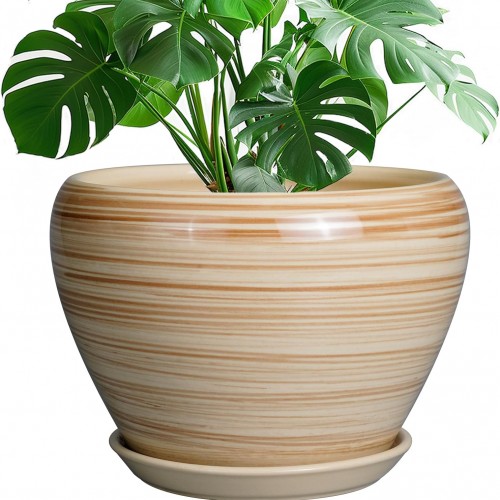 - Drainage Hole and Saucer:There is a drainage hole at the bottom of the 10 inch pots for plants, which can discharge excess water and benefit the growth of plants; the lightweight ceramic tray can not only keep your desktop clean, but also convenient your movement