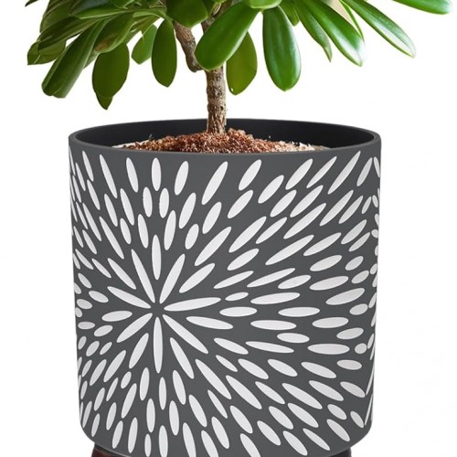 - 【Elegant 3D Pinwheel Design】This 10-inch planter features a captivating 3D pinwheel pattern in a chic combination of white and gold, perfectly complemented by three sturdy coffee-colored wooden legs. Its unique and eye-catching design adds a modern yet luxurious touch, making it a versatile addition to various decor styles, including contemporary, glam, and mid-century. Ideal for showcasing your favorite plants while elevating the aesthetic of any room.