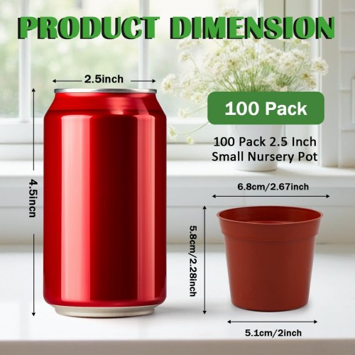 100-Pack 2.5 inches Plus Tiny Round Plant Pots Succulent Seedling Nursery Pots Made from Virgin Grade PP Material(Tiny, 68mm2.5 inch)