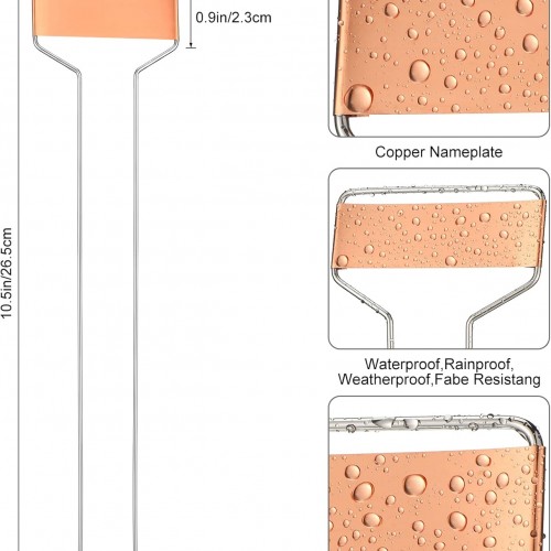 - Reliable Material to Use: the plant tags are mainly made of copper and stainless steel, strong and reliable, not easy to fade or deform, with smooth surface, you can write the names on it, then insert it into the soil or flowerpot; The 2 foot design makes it stand steady, easy to insert into the soil and place in different corners easily
