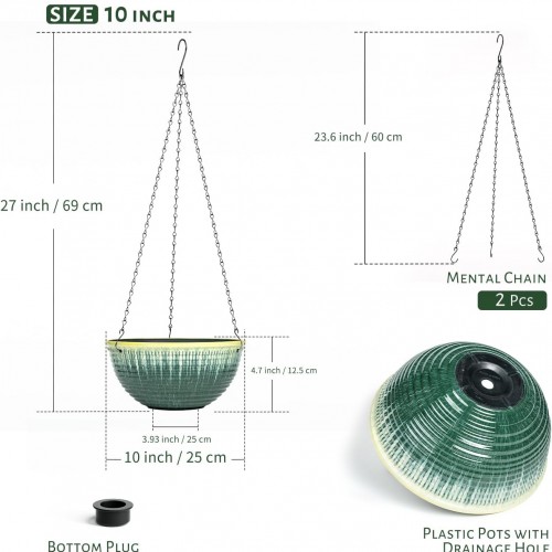 - Lightweight and Space-Saving – 10 inch hanging pot are made from sturdy plastic, these planters are light with three rust-resistant chain and hook enough to hang anywhere indoors and outdoors.