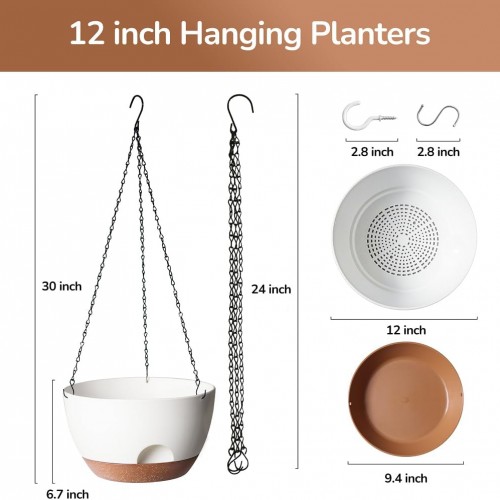12 Inch Hanging Baskets for Plants Outdoor, Hanging Planters for Indoor Outdoor Plants, Hanging Planter with Self Watering, Hanging Flower Pots (White)
