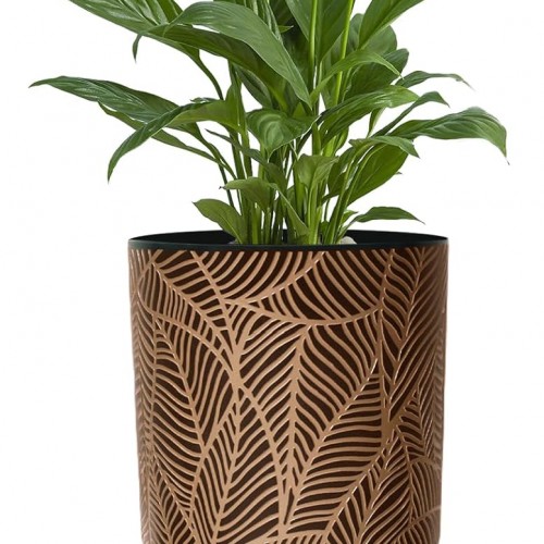 12 Inches Indoor Plant Pot with Walnut Color Stand Honeycomb Embossed Flower Pot with Drainage Holes Large Modern Planters for Indoor Plants-Gradient White Gray