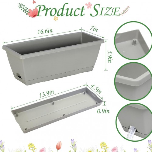 - 【Lightweight & Moderately Sized】This planters for outdoor plants set size: 16.6 × 6 × 7 inches, making it lightweight, compact, and easy to carry and store. This rectangular window planting box has a moderate size and is convenient to install on most windowsill, window and balcony, allowing you to easily plant vegetables or flowers.