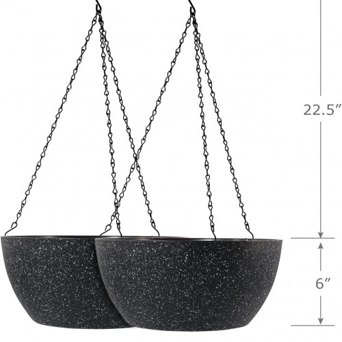 13 inch Large Hanging Planters Plant Pots for Outdoor Indoor Plants with Drainage Holes and Chain, 2 Pack Round Hanging Flower Pots for Garden Home Porch Decor, Speckled Black