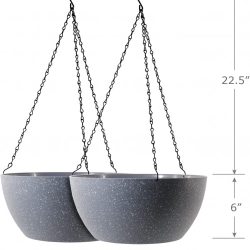 13 inch Large Hanging Planters Plant Pots for Outdoor Indoor Plants with Drainage Holes and Chain, 2 Pack Round Hanging Flower Pots for Garden Home Porch Decor, Speckled Grey