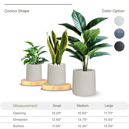 14″ H x 13.7″ D Conico Fiberstone Round Planter with Drainage Hole, Smooth Finishes, Weather Resistant for Indoor and Outdoor Use, Included 2 Extra Coco Mats (Taupe, 10.6″ Pot Opening)