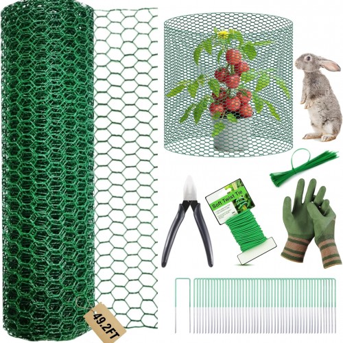 16.4Ft x16In Chicken Wire for Floral Arrangements – Free-Cut Green Metal Mesh with Hexagonal Galvanized PVC Coated Netting Guard Fence for Poultry, Garden, Plant