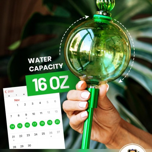 16 Oz Plant Watering Globes for Indoor Plants with Metal Self Watering Planter Insert – Premium XL Glass Hand-Blown Globe – Automatic Plant Waterer Indoor, Gift Idea for Gardeners [1 Globe, Green]