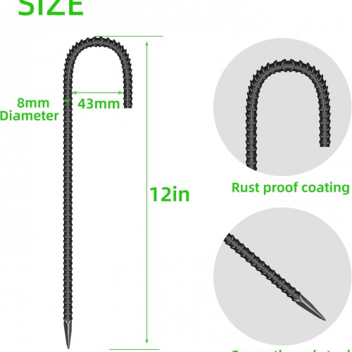 - SPECIFICATION:The rebar stakes are 12 inches long and 0.31 inches in diameter,black 18pcs.