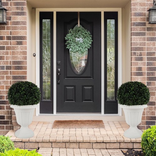 19.5″ Resin Tall Planters for Outdoor Plants, Set of 2 Country White Large Flower Pots with Handmade Birch Bark Texture, Heavy-Duty and Weather-Resistant for Year Round Indoor Outdoor use