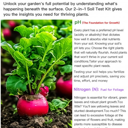 2-in-1 pH & Nitrogen Soil Test Kit, Home Soil Testing Kit for Lawns Gardening Grass Vegetables Nutrients, Soil pH Nitrogen Tester Strips Separately Sealed in Foils, Easy to Use, Rapid Results