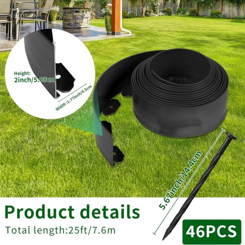 - More spiral spikes: This landscape edge is 25 feet long, 4 inches high with 46 Pcs 5.67 inch spiral spikes. 6 nails can be used for every 1m/3.28ft, which is suitable for the needs of many landscape projects