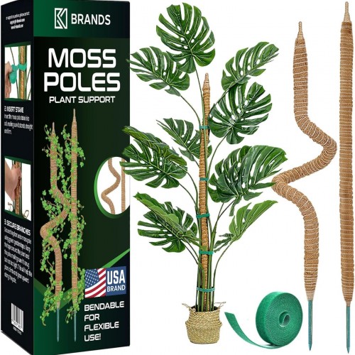 2 Pack 48” Bendable Moss Pole Monstera Plant Support for Climbing Indoor Plants – Stakes for Potted Climbers – Tall Sticks Indoor Trellis for Houseplants – Accessories for Monstera Pot