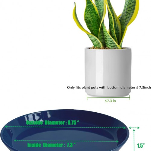 - Set of 2 Trays 8 Inch : plant saucer 8 inch, top diameter 8.75″ , inner diameter 7.3″, with a height of 1.5″, suitable for planters with bottom diameter less than 7.3 inches.
