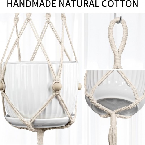 - Handmade for Durability: Crafted from natural cotton rope, this hanging basket is meticulously handwoven for long-lasting strength and support; Fits 4 to 12 inches pots and supports up to 22 lbs, keeping your plants safely suspended without tilting