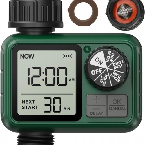 - 【EASY TO PROGRAM, LOTS OF FLEXIBILITY WITH SETTINGS】Our 2025 upgraded hose timer brass is easy to use and has a full of functions which are auto, manual, and rain delay three modes to meet all your watering needs, you are able to program it for exactly what you need it for with confidence it will water when programmed. Ideal for outdoor gravity drip irrigation, garden hose watering, lawn sprinkler controller, greenhouse mist system, pool filling, birdbath dripper, pet drinking, etc.