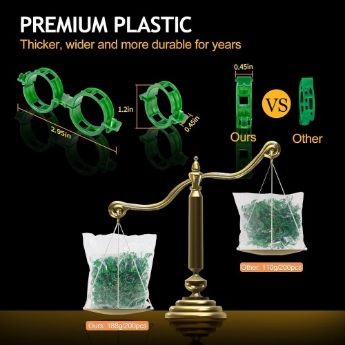 - Fits for Most Plant Stem and Vine – Included 200 units trellis clips. With a bigger size, whose unfolded length of 2.95 inches, a center diameter of 1.2inches