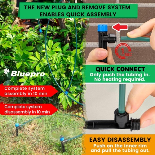 230FT Drip Irrigation System, Quick-Connect Automatic Garden Watering Misting System for Greenhouse, Yard, Lawn with 1/2 inch Hose, 1/4 inch Distribution Tubing, Drip Emitters, Connectors