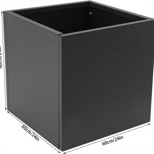 24″ L x24 W x24 H Metal Flower Boxes Planter Boxes Outdoor Raised Garden Bed Indoor Outdoor Planting Bed Black Square Planter Box for Patios Lawn Yard Decor Storage