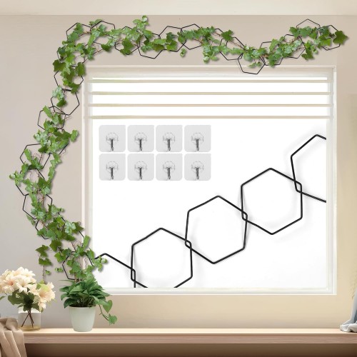 - Extended Size and Complete Accessories: Our plant climbing trellis includes 24 circle, 6 transparent hooks, and 4 black metal question mark hooks. The two types of hooks are compatible with various surfaces such as tiles and walls, meeting multiple hanging needs. With a total length of 120 inches, the extended size allows your plants to climb higher with ease