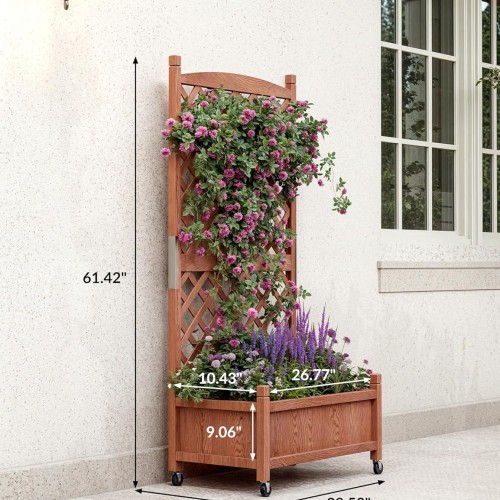 - 1,Natural Fir Wood Construction: This raised planter box with trellis is crafted from 100% natural fir wood, offering an eco-friendly and durable gardening solution. The solid wood construction withstands outdoor elements without warping or cracking, ensuring years of reliable use. Its natural finish blends beautifully with any garden or patio decor while providing sturdy support for your plants.