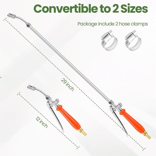 29″ All Metal Replacement Sprayer Wand, Suitable for 1/2″ Hose Quick Connector, 1/4″ & 3/8″ & 1/2″ Brass Barb Spray Wand, Built-in Shut Valve Stainless Steel Spray Wand