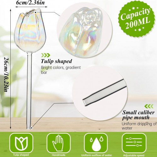2Pcs Tulips Self Plant Watering Globes, Glass Self Watering Planter Insert, Automatic Plant Waterer Devices Indoor Outdoor (Transparent)