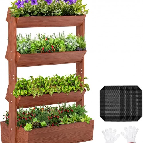 3-Tiers Wooden Raised Garden Bed Tiered Planter Box Vertical Garden Planter Wood Plant Stand for Patio, Balcony, Freestanding (Carbonized S)