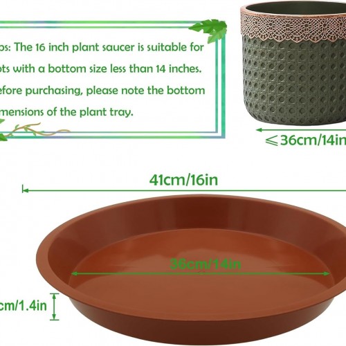 4 Pack 16 Inch Round Plant Saucers for Less 14Inch Pot Indoors Outdoors Plant Trays for Pots Planter Saucer Plastic Plant Drip Tray Flower Planter Water Tray for Potted Plants(Terracotta, 16″(4pcs))