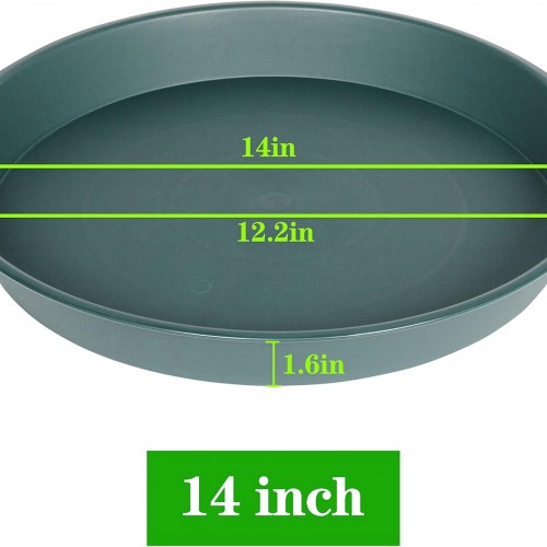 4 Pack of 14 inch Plant Saucer, Heavy Duty Round Plant Trays for Pots, Plastic Plant Water Tray, Bird Bath Bowls, Plant Saucers for Indoors, Drip Trays for Planter 12-14″ (14″, Green)