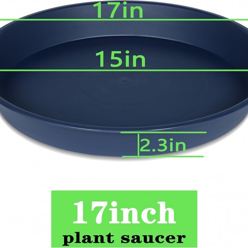 4 Pack of 16 17 inch Plant Saucer (15 inch Base), 2.3″ Depth, Heavy Duty Deep Plant Trays for Planter Pots, Bird Bath Bowls, Plastic Plant Saucers for Indoors (17″, Blue)