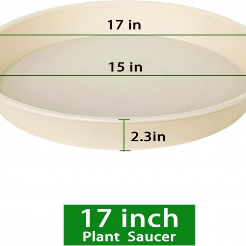 4 Pack of 16 17 inch Plant Saucer (15 inch Base), 2.3″ Depth, Heavy Duty Deep Plant Trays for Pots, Plant Saucers for Indoors, Bird Bath Bowls, Drip Trays for Planter (17″, Beige)
