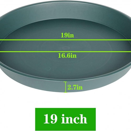 4 Pack of 18 19 inch Plant Saucer Drip Tray (16.6 inch Base), Heavy Duty Large Deep Plant Saucers for Pots, Plastic Flower Planter Water Trays for Indoors Outdoor (19″, Green)