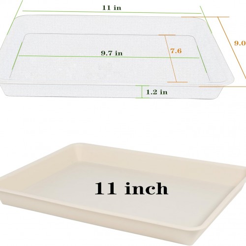 4 Pack Plant Saucer Tray Rectangular, Plant Saucers for Indoors, Heavy Sturdy Plastic Plant Drainage Trays, Plant Drip Trays for Pots, Seed Starter Growing Tray (11 x 9 inch, Beige)