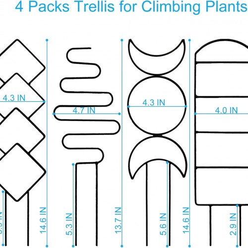- Solid Rust Proof: 4 small garden trellis for climbing plants are between 13 -15 inches tall, made of iron, painted black to prevent rust, and then hand-welded on both sides to make them durable