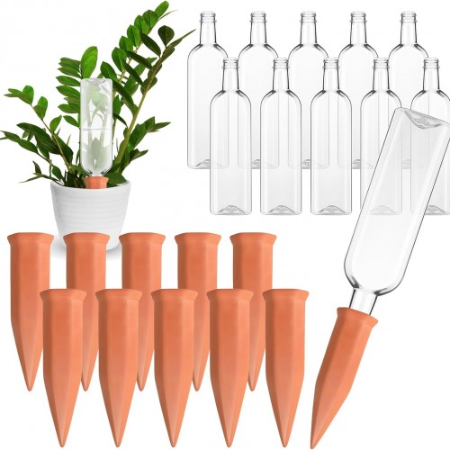 4 pcs Terracotta Watering Spikes – Automatic Self-Watering Stakes, Vacation Plant Waterer for Wine Bottle, Perfect for Indoor & Outdoor Plants