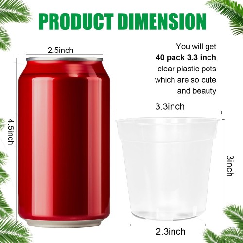 40 Pack 3.3 Inch Clear Nursery Pots for Plants, Sturdy Plastic Plant Pot for Planting Vegetables Flowers Seedlings, Transparent Seed Starter Pots with Drainage Holes, Gardening Gifts(40P-3.3″Clear)