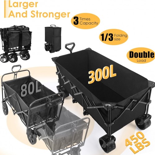 - 【𝐒𝐦𝐚𝐥𝐥𝐞𝐬𝐭 𝐚𝐧𝐝 𝐋𝐚𝐫𝐠𝐞𝐬𝐭】:The ratio of folding size to expand size is 𝟏:𝟔,other wagon are only 1:4.It is convenient to be stored at home, garage and car boot, and we also offer a 𝐜𝐚𝐫𝐫𝐲-𝐨𝐧 𝐛𝐚𝐠 for carrying and storing.