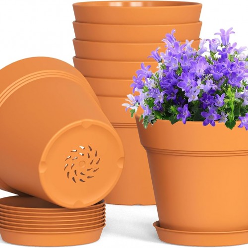5 Inch Plastic Plant Pots with Drainage Holes and Trays – 6 Pack Small Nursery Pots for Indoor & Outdoor House Plants and Flowers, Seedling Starter Planters, Colorful